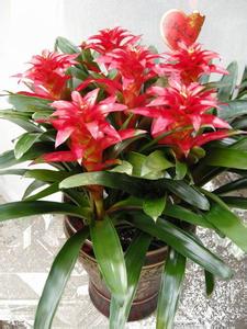 鸿运当头是凤梨科的花卉,花在株顶或中部开放。鸿运当头花叶繁盛,花色红艳,很有喜庆的气息。
