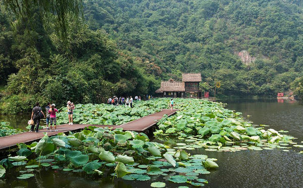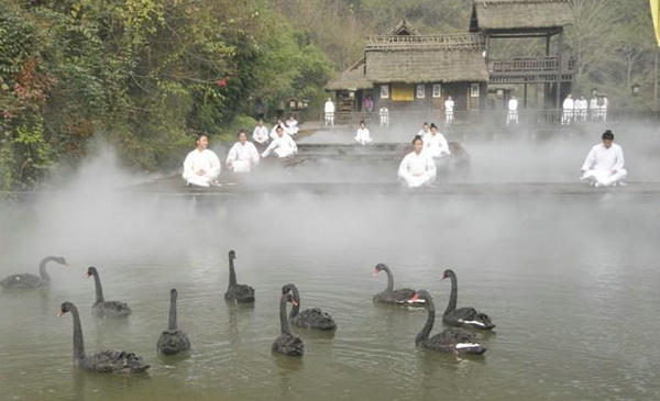 从武当山风景区入内,有一处逍遥之地,唤做“逍遥谷”。据说,“逍遥谷”是根据道家的主要代表人物庄子的《逍遥游》而得名。石传情,水达意,鱼儿水中嬉戏,鸟儿展歌喉,恣意酣畅,一如逍遥游之理想境界;人恬淡,猴悠闲,天鹅游于间,田田荷叶,“易”旗飘扬,自然安谧,宛若世外之桃源。