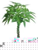 发财树是常绿乔木,树高8-15米,种於盆栽多不超过2米。掌状复叶,小叶5-7枚,枝条多轮生。花大,长达22.5cm,花瓣条裂,花色有红、白或淡黄色,色泽艳丽。室内观赏多作桩景式盆栽。