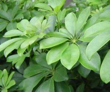 七叶莲耐寒耐旱性强,是常绿蔓性灌木,分枝多,茎节处生有气生根,掌状复叶互生,有小叶7~9片,长椭圆形,深绿色,叶柄细。花淡黄绿色,秋冬开花,浆果红黄色,春季成熟。适合庭院美化或盆栽。