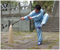 武当拂尘主要方法有上抽、下扫、甩摔、里缠外绕、盘绞挑抖等。其特点是,舒展圆活,潇洒飘逸;步走八卦,腰如蛇行;扣扣如环,节节上连;以柔克刚,刚柔相济。