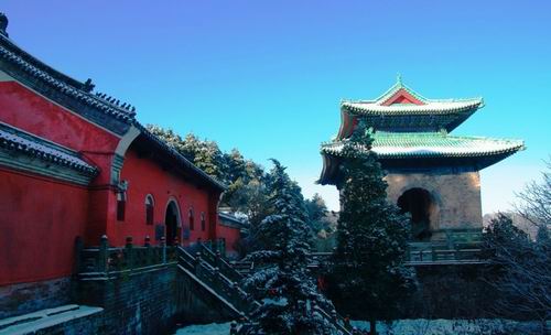 进了小天门左边是一座龟碑亭,碑中内容是永乐皇帝为加强庙观管理下的一道圣旨。过去,在庙道人和朝山进香的信士们都要遵循圣旨中的道规,违者给予治罪。