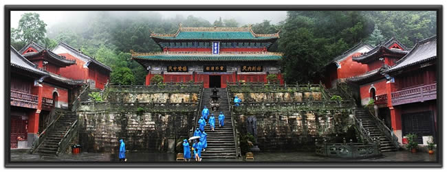 紫霄大殿为紫霄宫的正殿,是武当山保存下的唯一的一座重檐歇山式木结构殿堂。这座在中国古建筑中屈指可数的抬梁式大木结构的道教建筑,其结构、布局科学合理,艺术风格协调统一,同自然环境融为一体,在武当山古建筑群中独具风貌。同时,在漫长的历史进程中,沉积有历代工匠的技术和智慧,集中体现了中国明清建筑的辉煌成就,具有极高的观赏和科研价值。 最让人眼花缭乱和赞不绝口的是大殿内部,整座大殿雕梁画栋,富丽堂皇,构思巧妙,造型舒展大方,装修古朴典雅,陈设庄重考究。大殿内设神龛五座,供有数以百计的珍贵文物,大多为元、明、清三代塑造的各种神像和供器,造型各异,生动逼真,琳琅满目,美不胜收。 正中神龛供奉真武神像,为明代泥塑彩绘贴金,高4.8米,是武当山尚存最大的泥塑像。这里还供奉着一尊明末清初纸糊贴金神像,是中国迄今发现最早、保存最完好的纸糊神像,它集聚了中国古代纸糊、雕塑、贴金、彩绘、防腐等工艺的精髓,是一件文物珍品,对研究中国古代纸糊工艺有很高的价值。 大殿屋脊由六条三彩琉璃飞龙组成,中间有一宝瓶,闪闪发光。因为宝瓶沉重高大,由四根铁索牵制,铁索的另一头系在四个儿童手中。传说,这四个小孩护着宝瓶,无论严寒酷暑和风雨雷电,他们都坚守岗位,确保宝瓶不动摇。因为所在位置比殿里供奉的主神还高,所以叫他们“神上神”。而老百姓看他们常年累月的风吹日晒,则叫他们苦孩儿。 紫霄大殿自明永乐年间重建后,历代对其进行了大小十余次维修,才得以保持往日的风采。1994年,联合国世界遗产专家考察武当山时深有感叹:“在这里,看到了按传统方法修缮古代建筑的例证”。 |