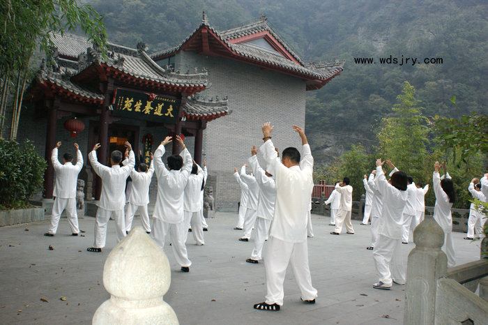 独具特色的武当养生功法。武当养生功法,源于武当道家养生文化,历经各个朝代,有数千年历史,至今而驰名天下。武当道家养生文化在历史的发展过程中,遵循传统道家“天人合一”、“我命在我不在天”等古代哲学思想,积极汲取儒、释、医、武等一切有益人类的养生方式,积众家之长与一体,终于形成独具特色、内容丰富、博大精深的养生文化体系。