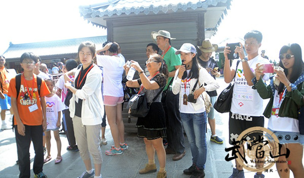 活动当天,来自海峡两岸的青年学子统一着鄂台青少年武当武术文化夏令营的队服,先后深入武当山南岩、紫霄、太子坡、金顶等景点,亲身感受武当山秀美灵动的自然风光、规模宏大气势雄伟的道教建筑,领略武当山的自然之美、人文之美。在金顶景区,沧桑壮美的古建筑群,“七十二峰朝大顶”的奇观、铜铸鎏金的武当金殿给夏令营成员留下了深刻印象。紫霄宫独特的建筑格局以及浓郁的道教文化氛围引起了成员们的极大兴趣。行走在武当的间隙,成员们纷纷用相机和手机记录武当山的神奇之美。