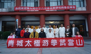 2015年10月20日,武当太极养生协会承办第九届武当内家拳名家讲坛在武当山召开,由青城派掌门人刘绥滨老师主讲,并教授青城太极养生站功六式和金刀出鞘拳。清晨与山雾比邻对望如梦似幻移步抬肘轻灵飘逸,晚上在武当仙山圣地对接交流,吸纳天地灵气,心静神宁。